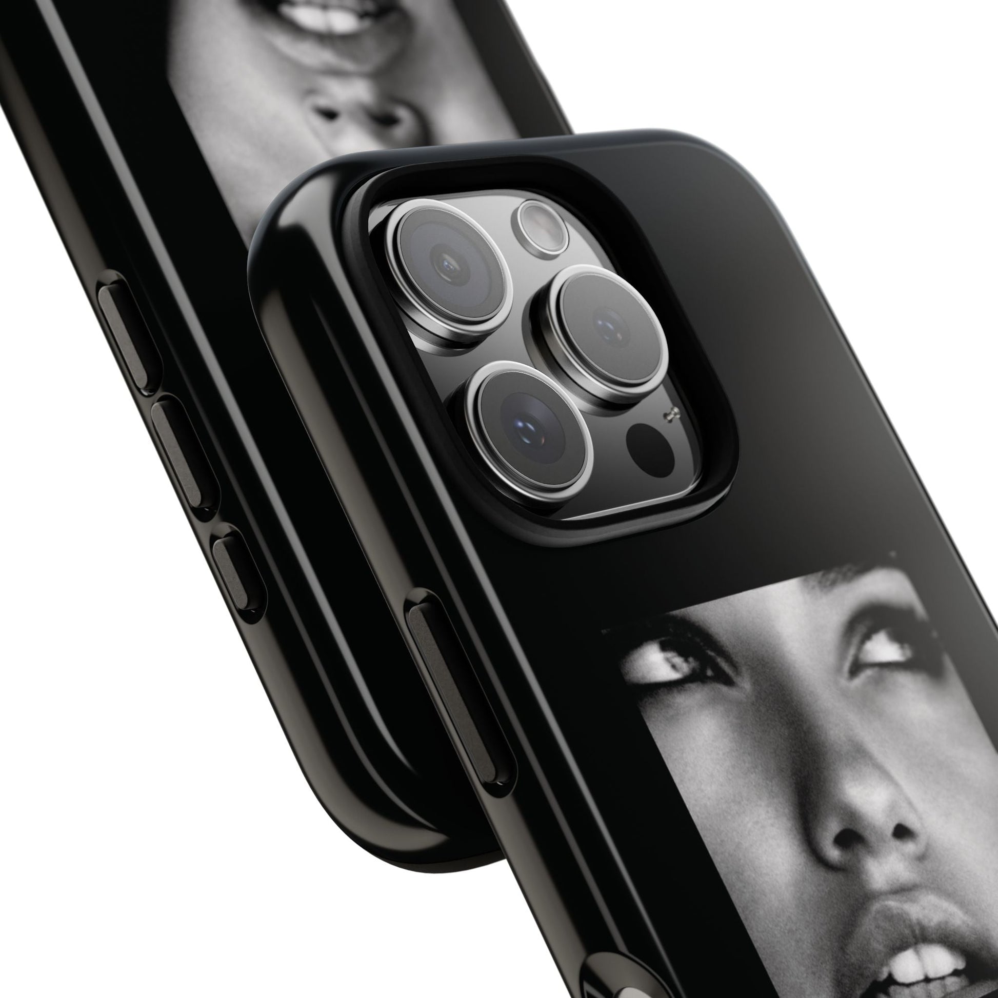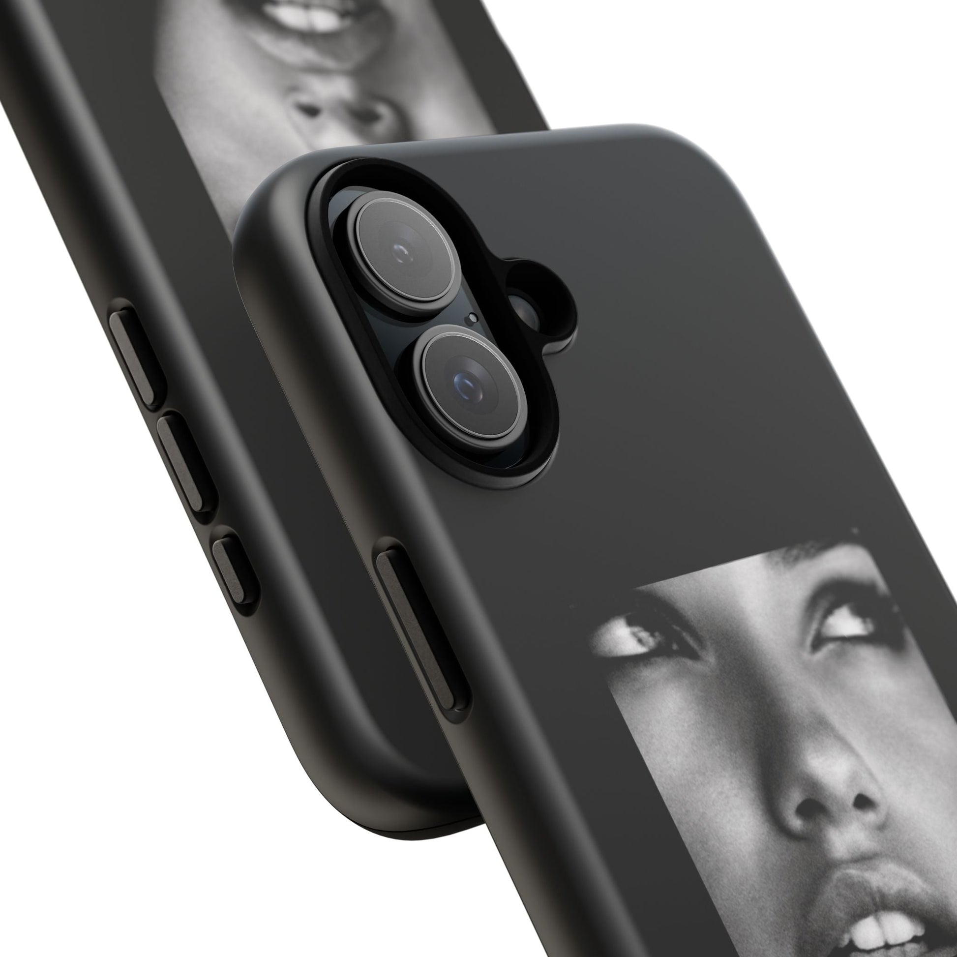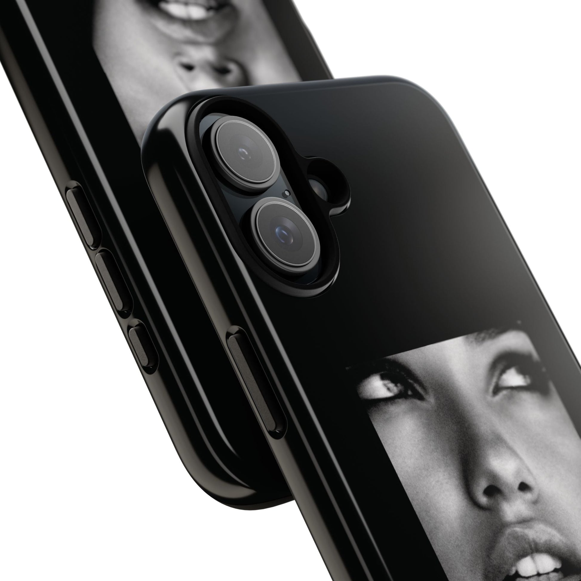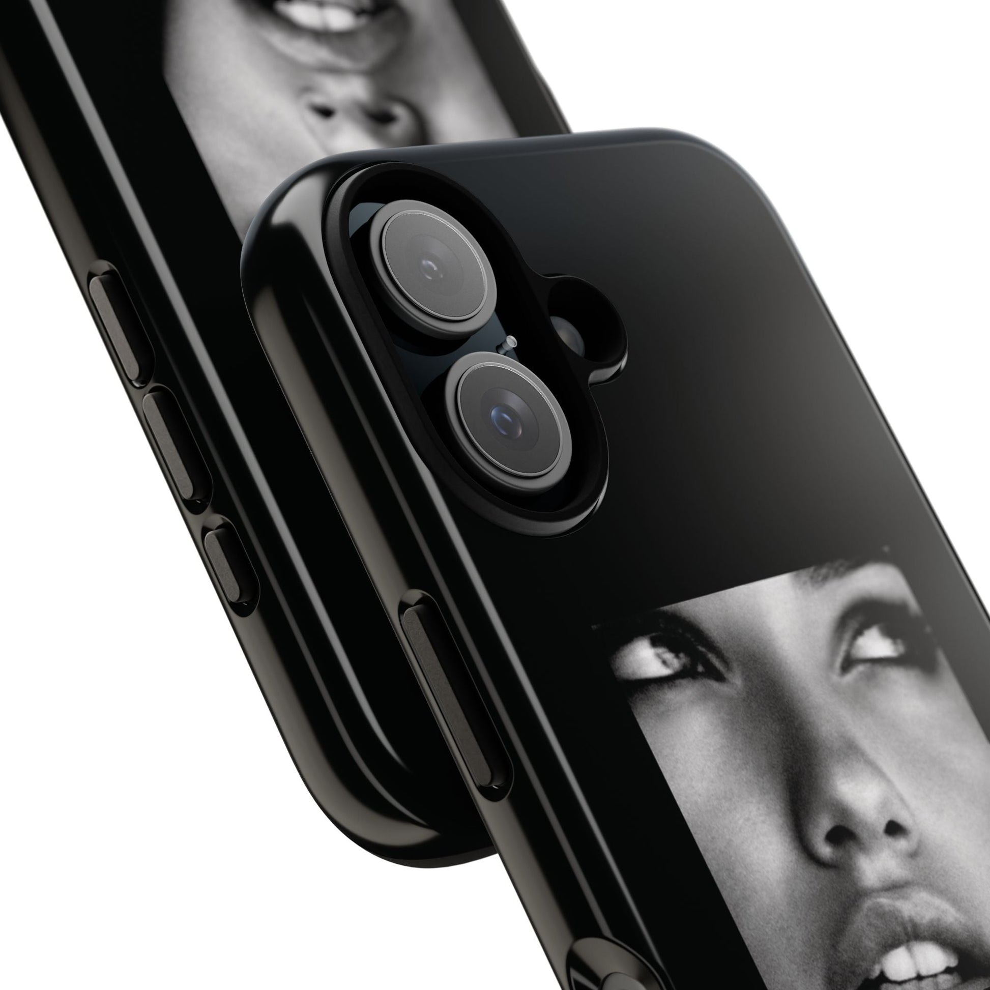 Showcasing a striking black-and-white portrait of the iconic Adriana Lima against a sleek black background, this case is a perfect blend of elegance and edge.