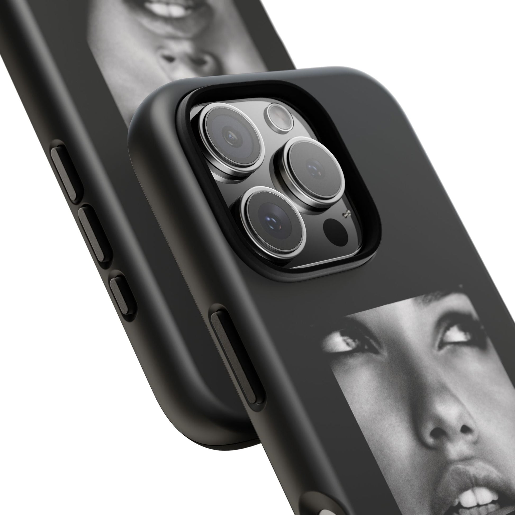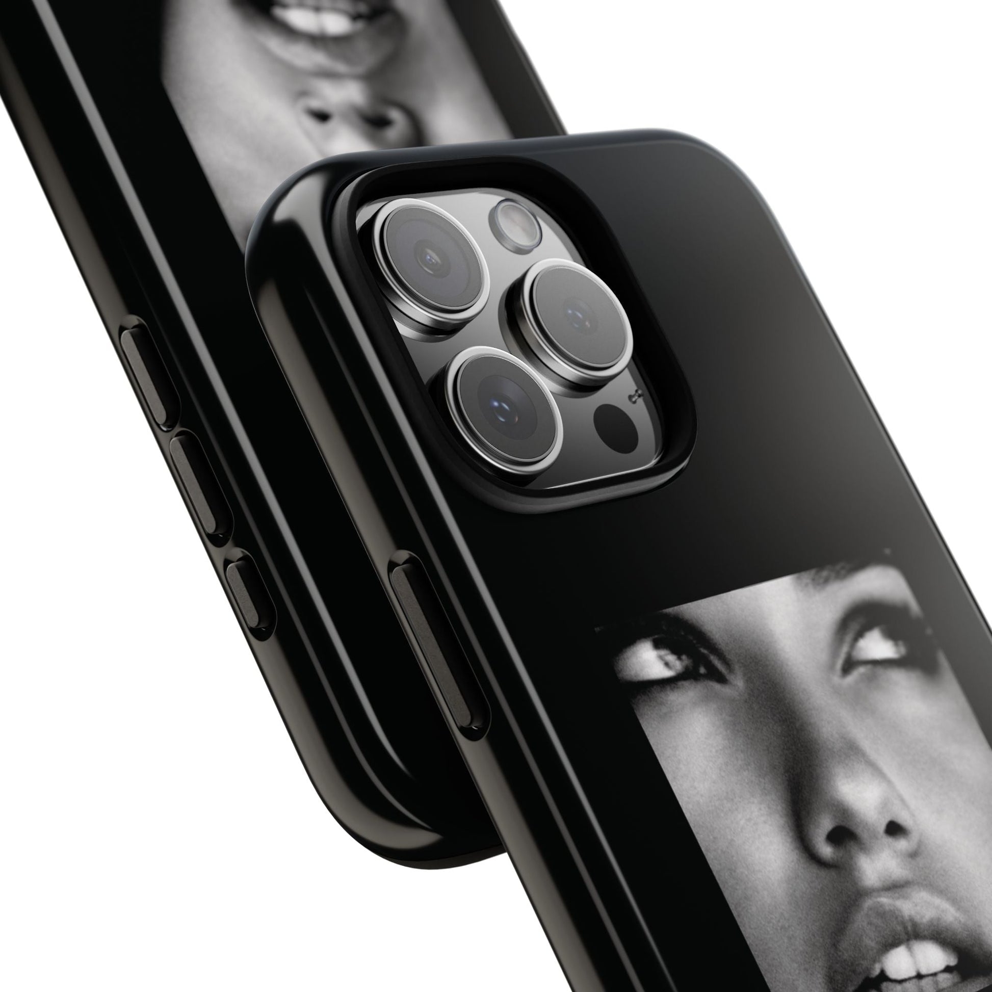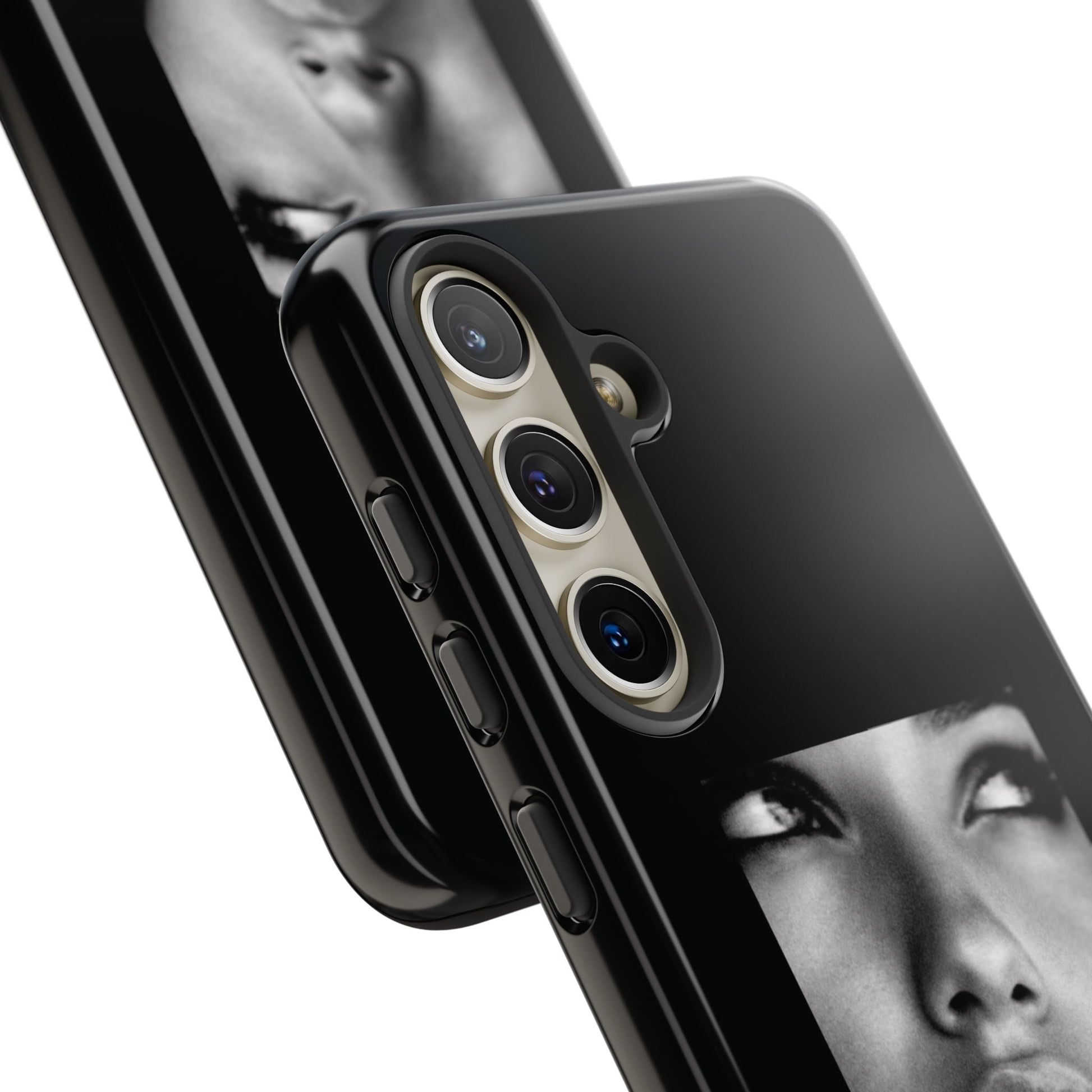 Showcasing a striking black-and-white portrait of the iconic Adriana Lima against a sleek black background, this case is a perfect blend of elegance and edge.