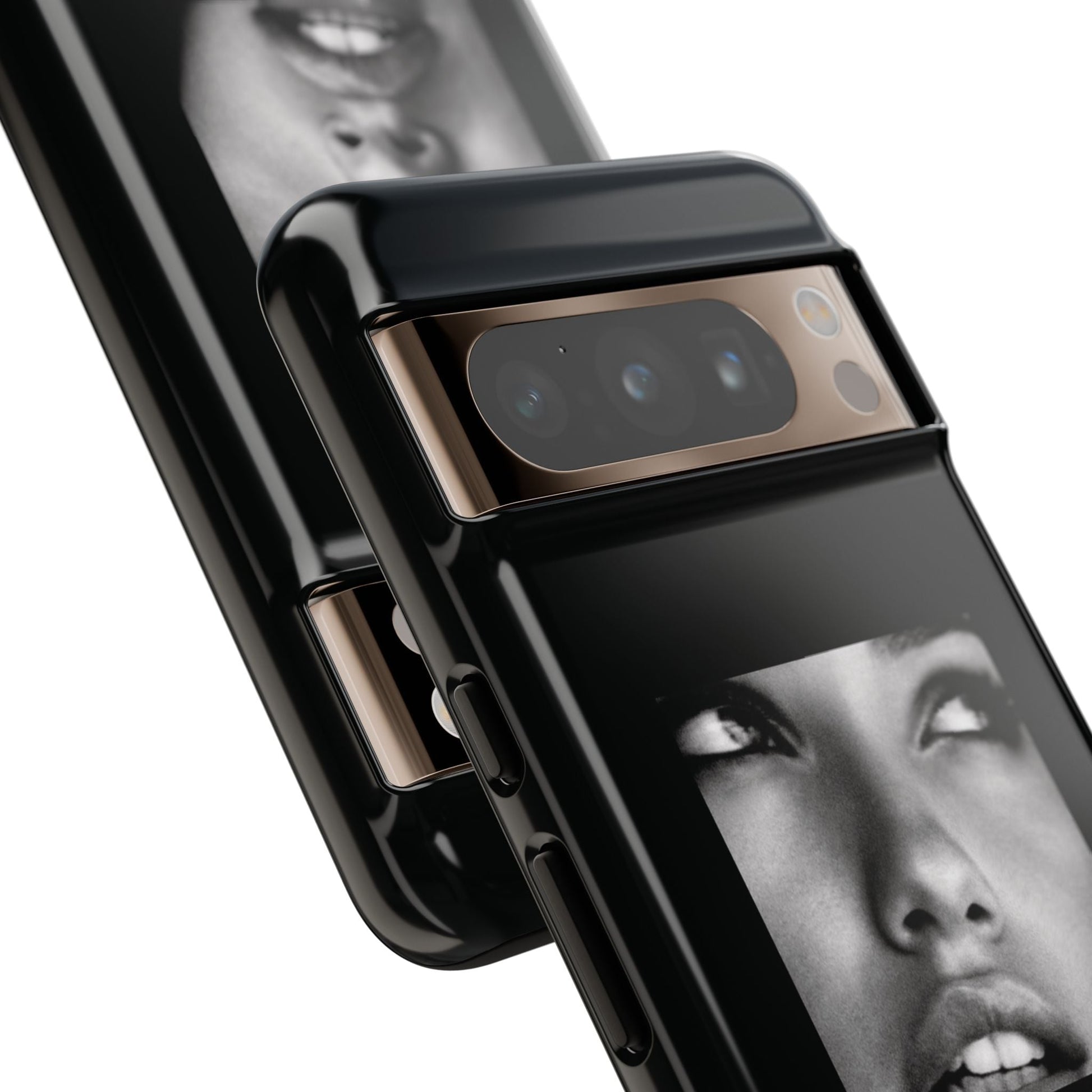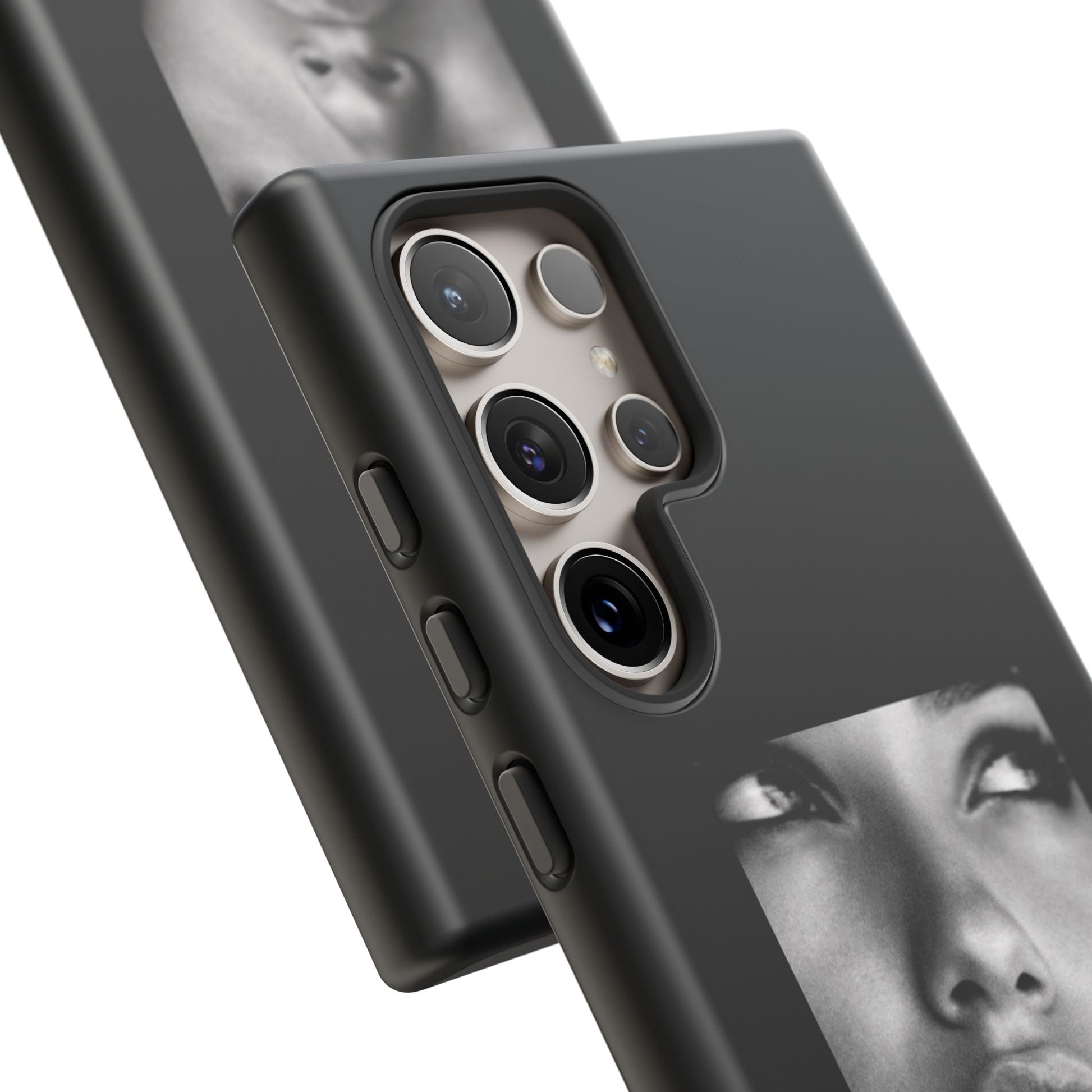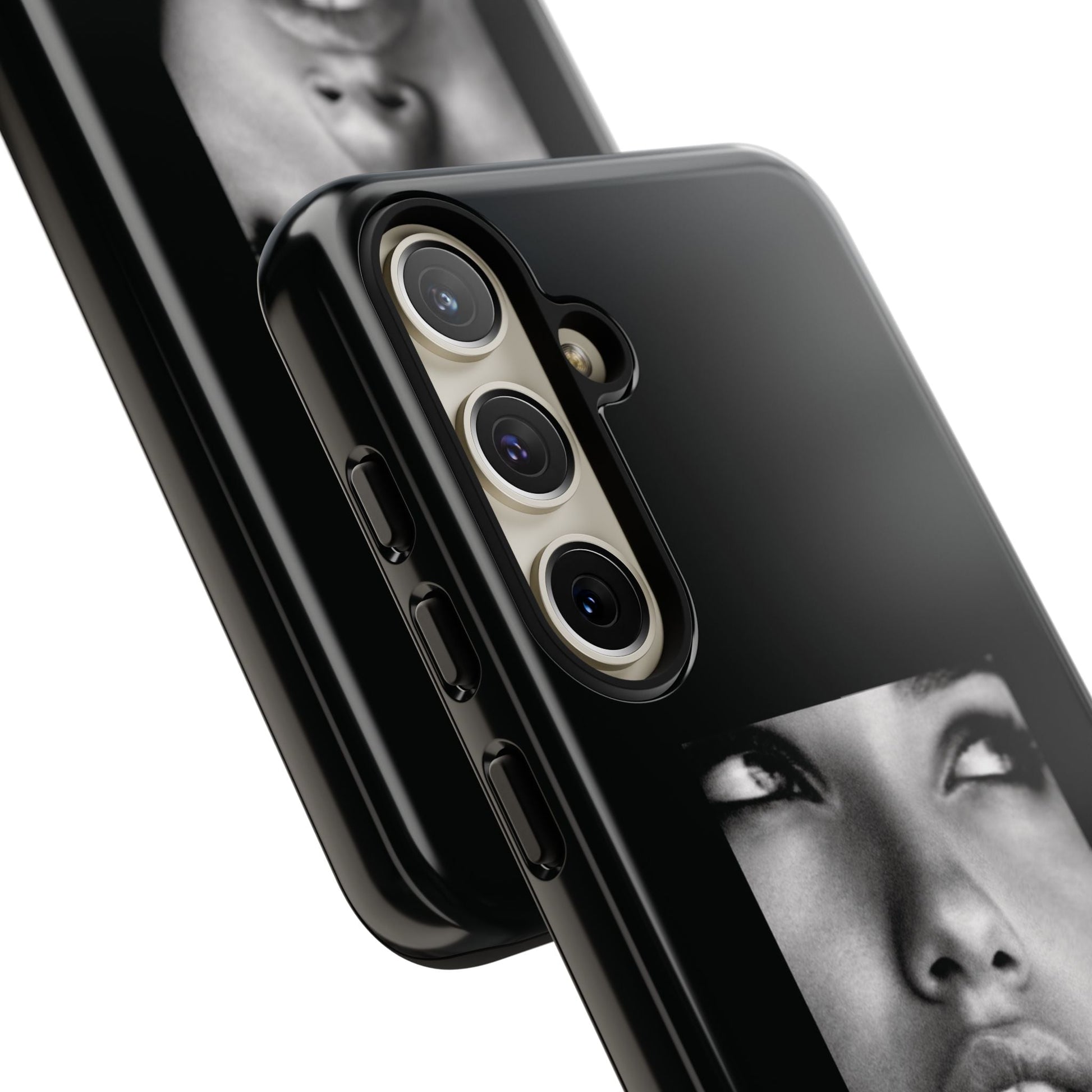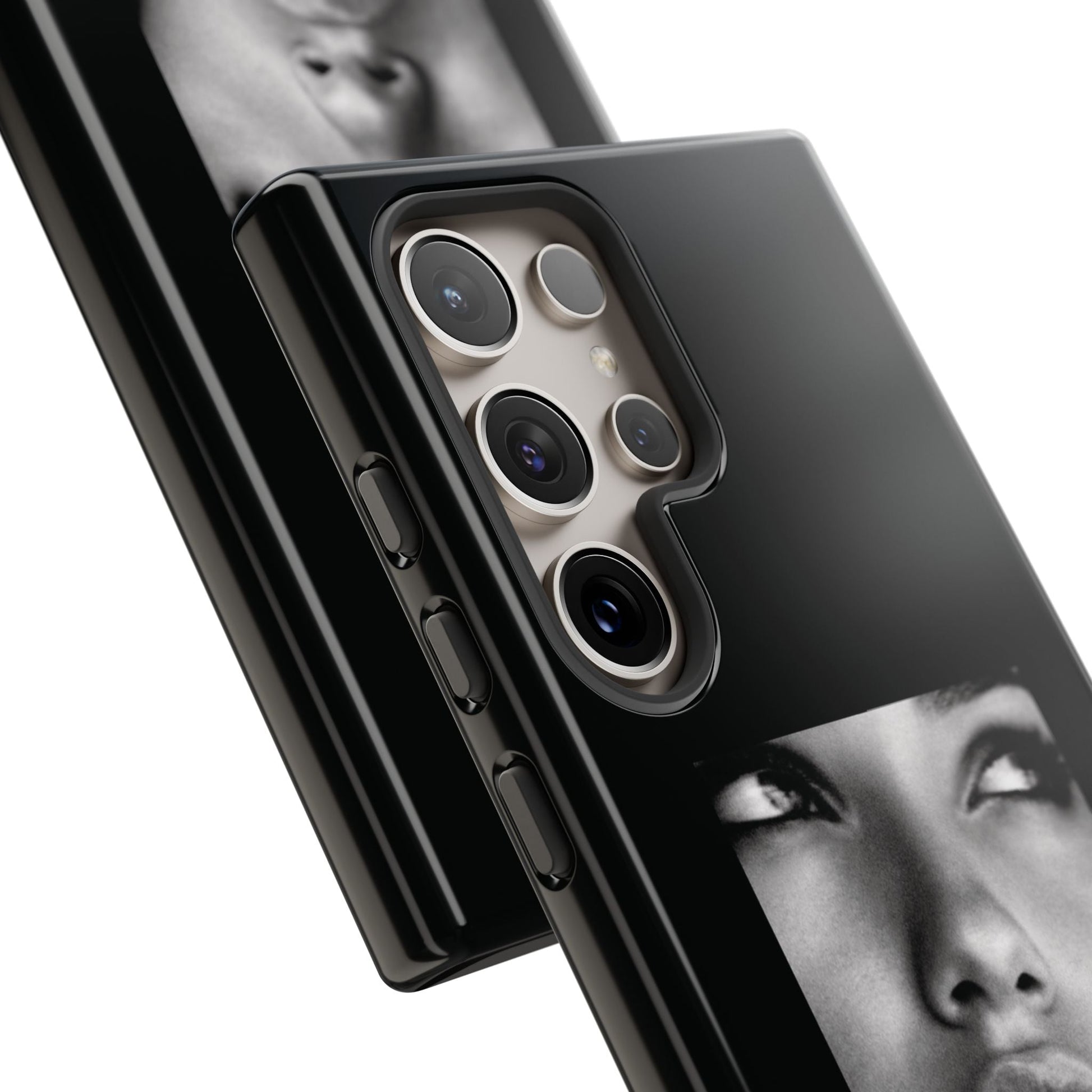 Showcasing a striking black-and-white portrait of the iconic Adriana Lima against a sleek black background, this case is a perfect blend of elegance and edge.