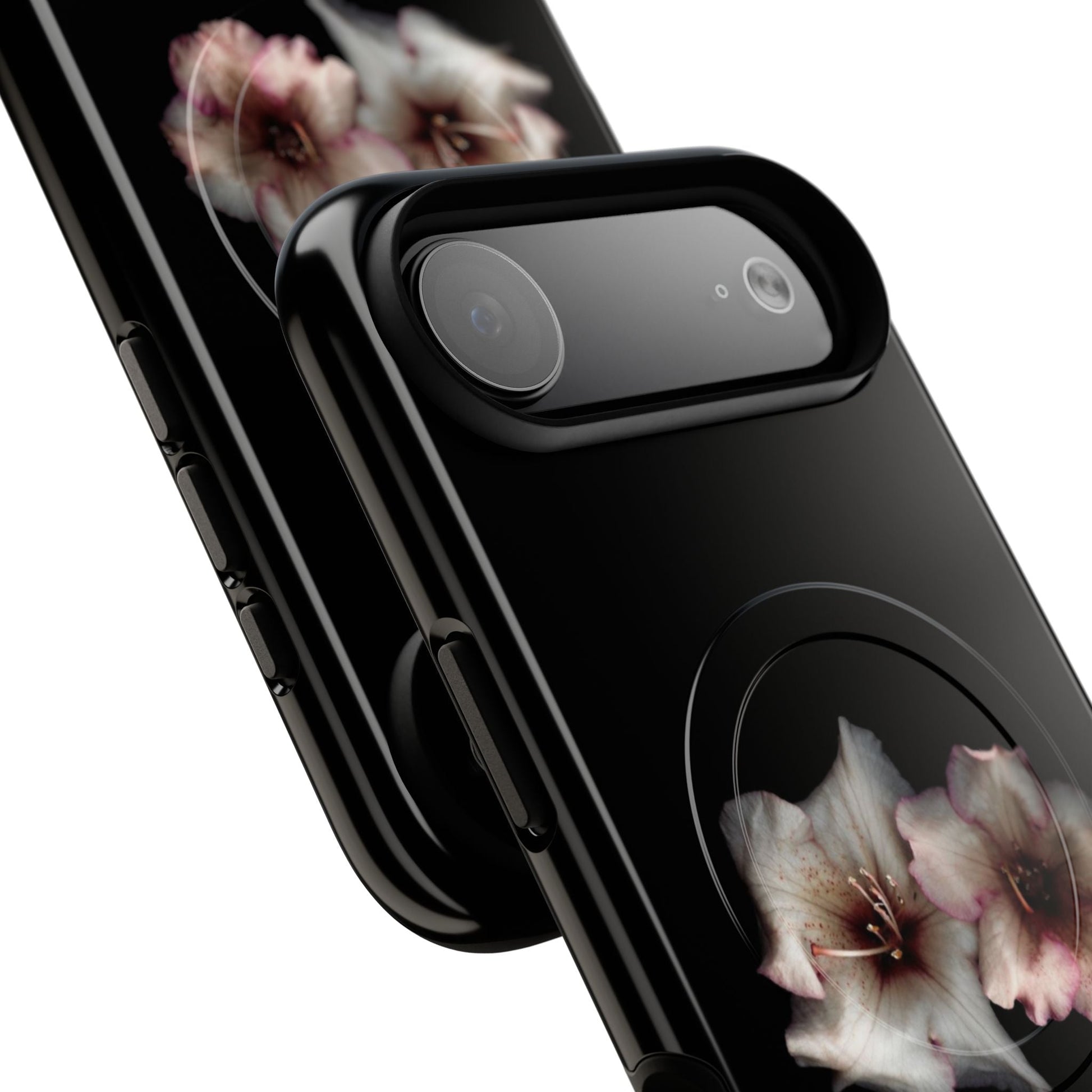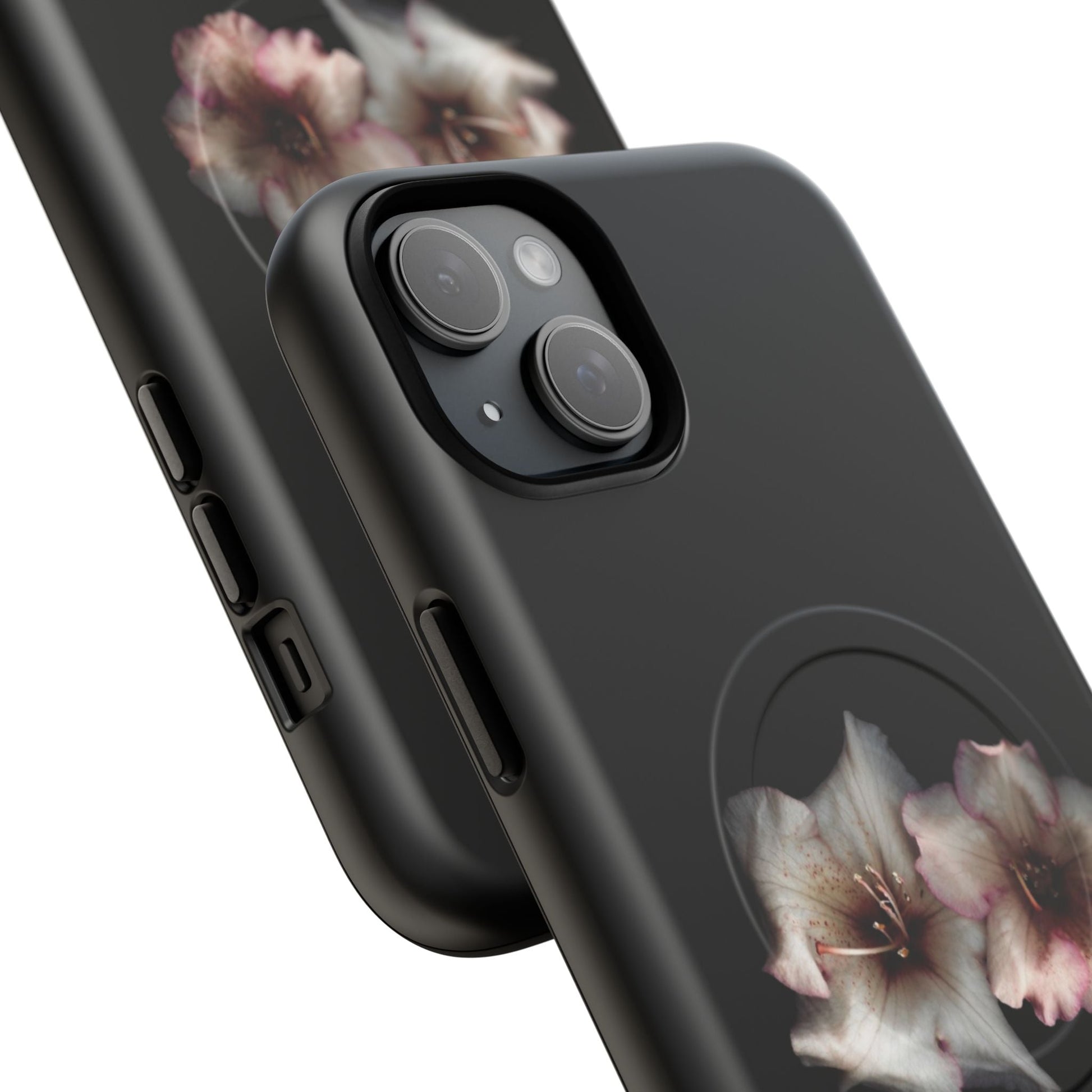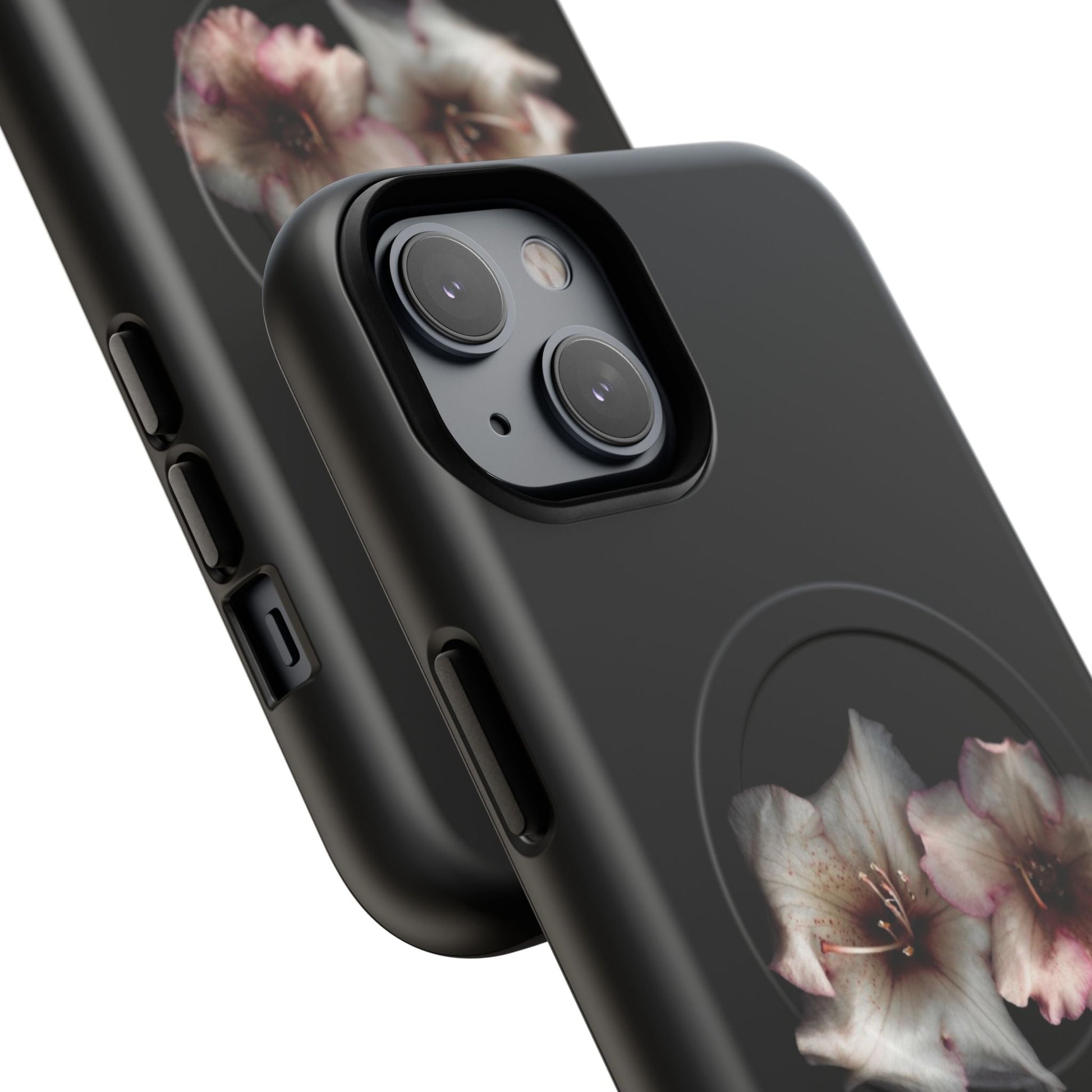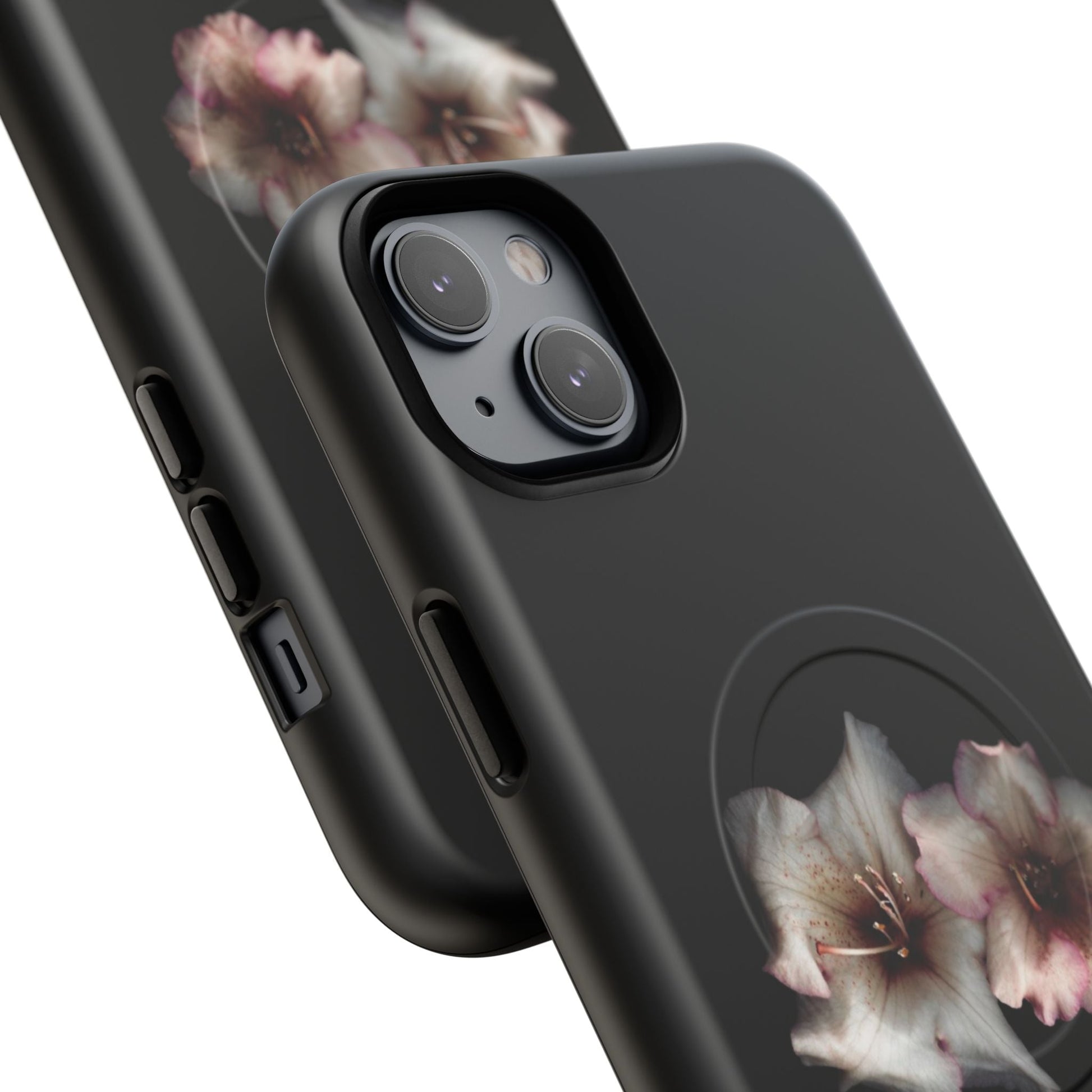 Perfect for those who appreciate the beauty of nature, even in the darkest hours. Featuring two stunning flowers against a sleek black background, this case adds a touch of sophistication to your phone while keeping it protected.