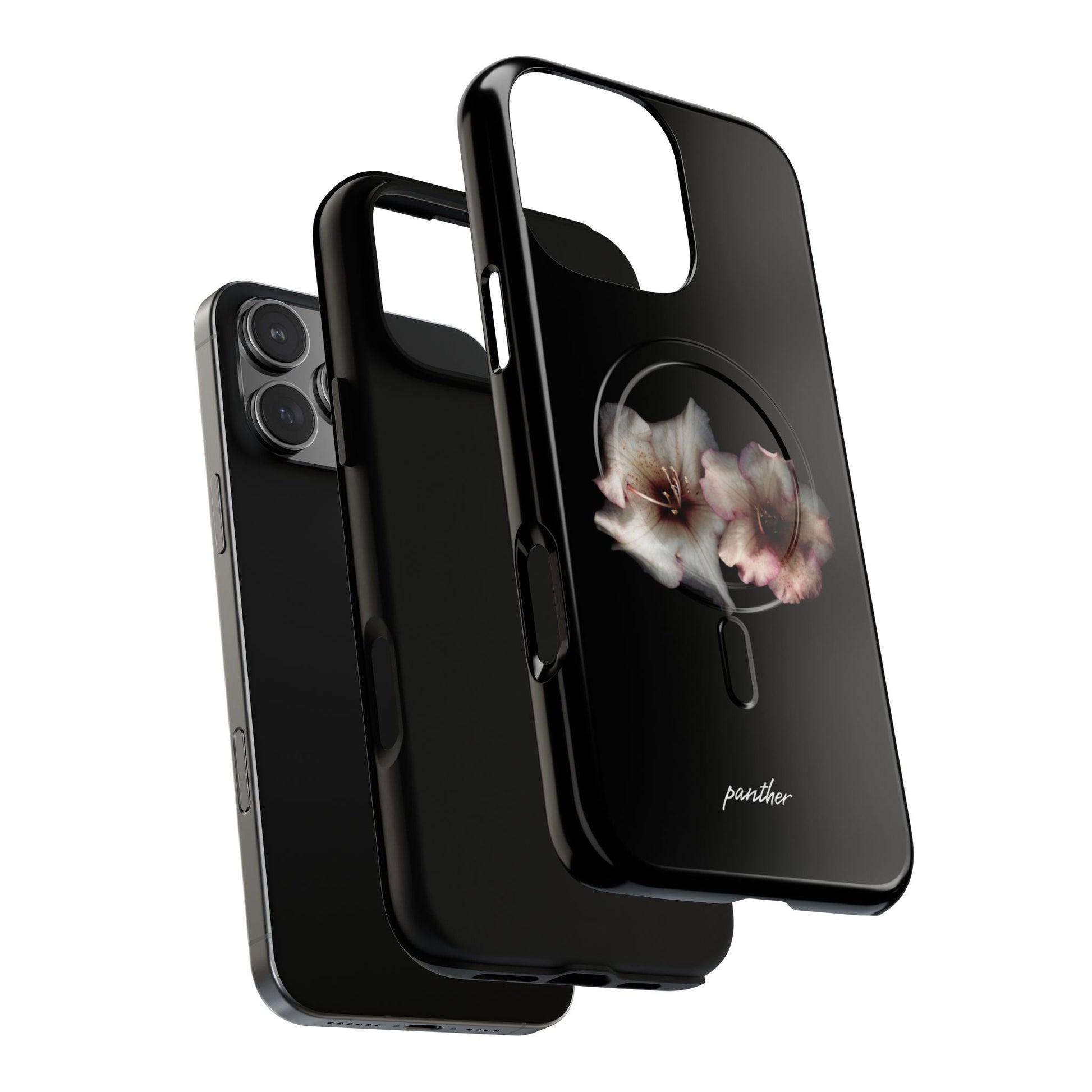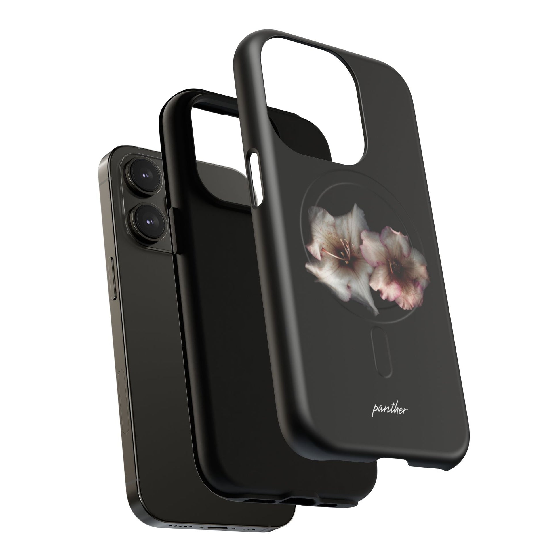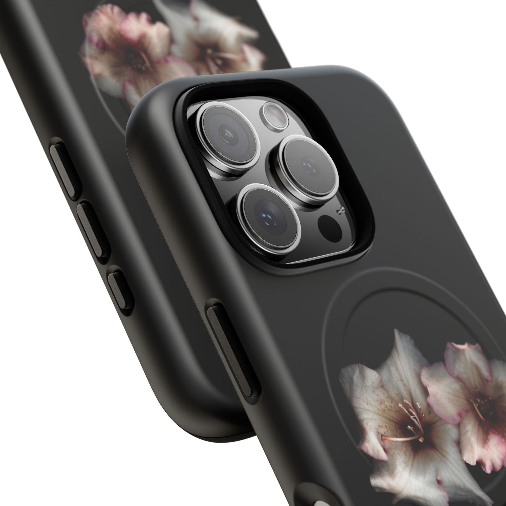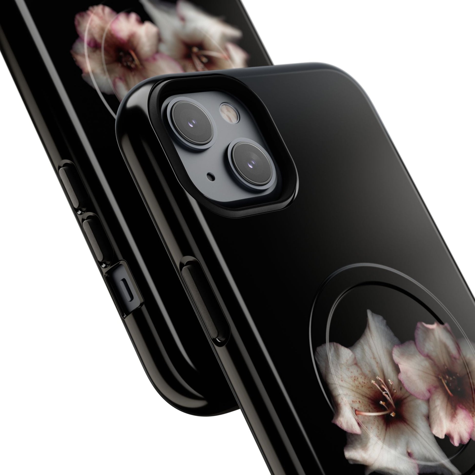 Perfect for those who appreciate the beauty of nature, even in the darkest hours. Featuring two stunning flowers against a sleek black background, this case adds a touch of sophistication to your phone while keeping it protected.